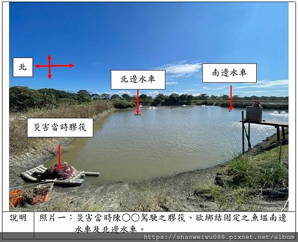 龍繩綁結 固定,然後再滑動膠筏欲前往綁結固定魚塭北邊水車,16 時 15 分許, 於距北邊水車約 8 公尺處