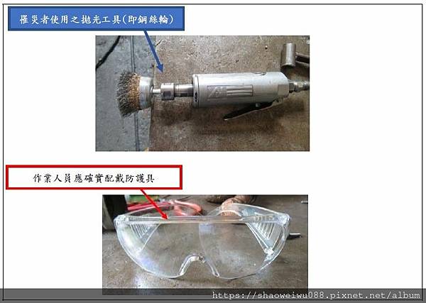 <<主題:使用鋼絲輪進行模具拋光作業未確實配戴防護具致勞工遭鋼絲刺傷>>
