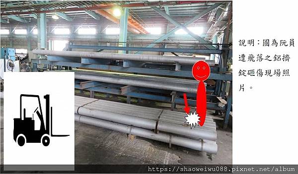 <<主題:堆放物料未採取必要設施防止物體掉落,致物體飛落造成勞工受傷>>