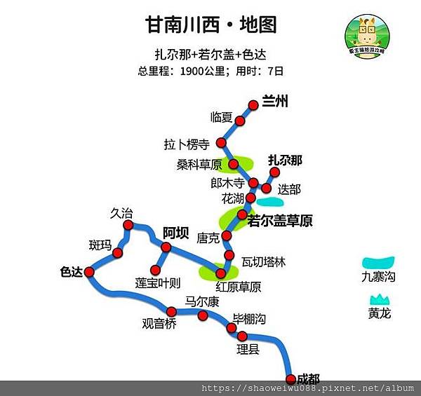 蘭州-臨夏-扎朵那-若爾蓋草原-阿垻-色達-成都 |