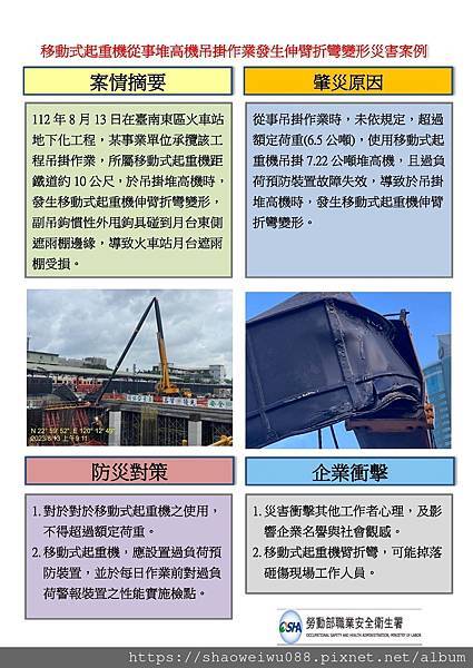 20231218宣導資料 從事堆高機吊掛作業發生伸臂折彎變形災害案